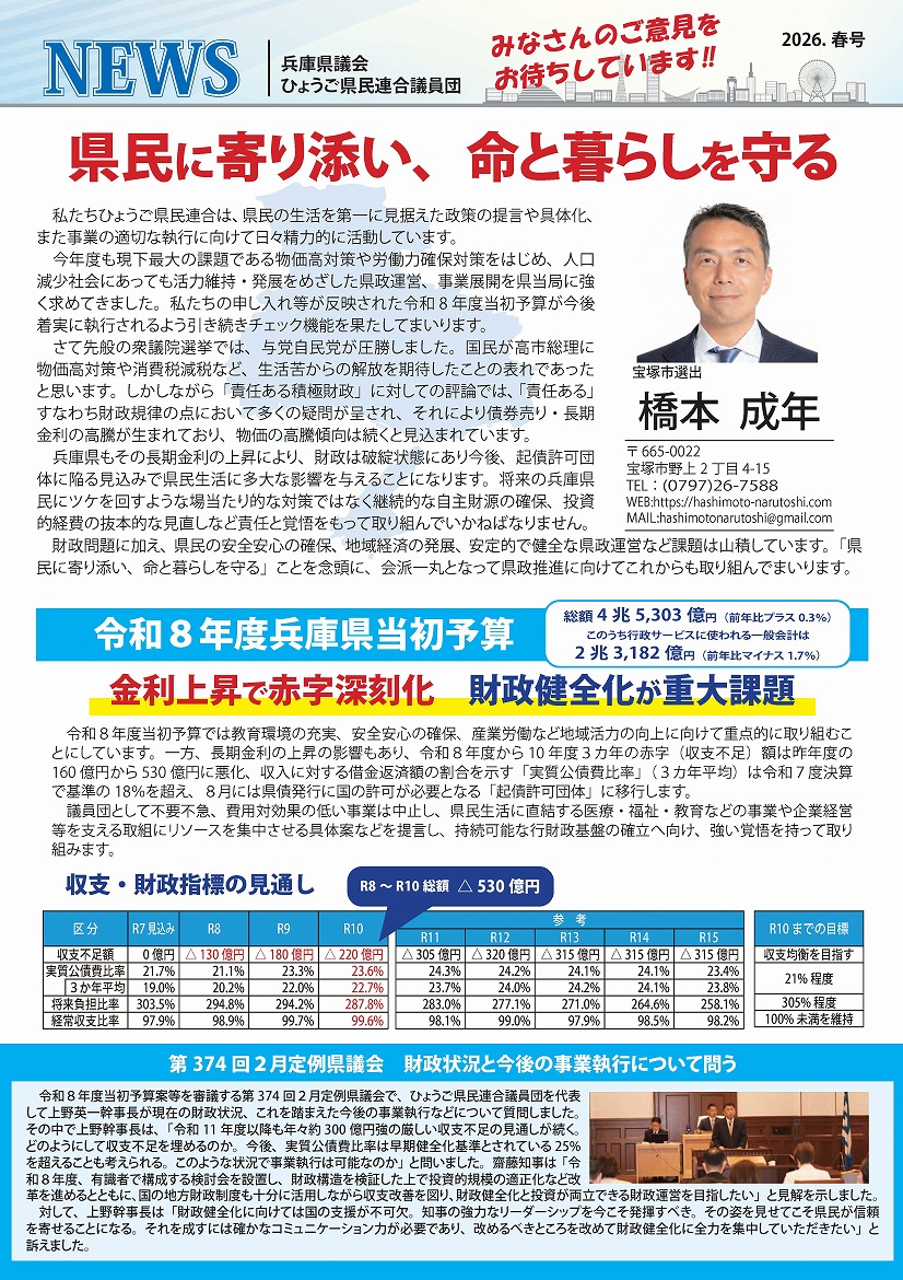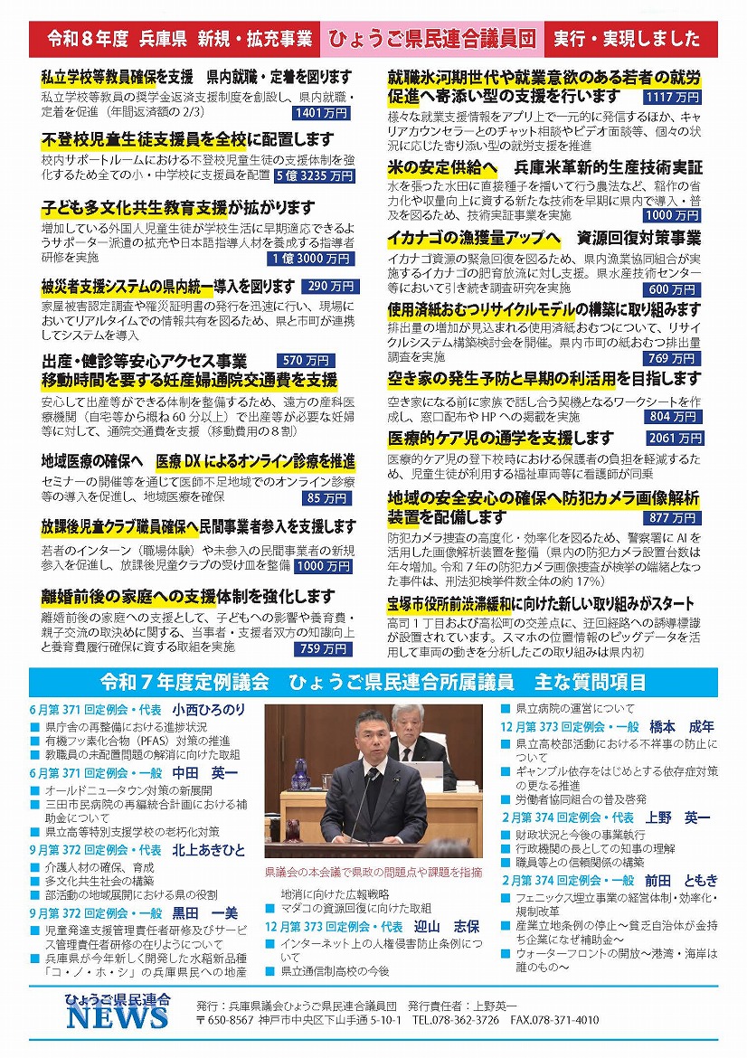 所属する県議会「ひょうご県民連合議員団」の会派ニュースを発行しました。